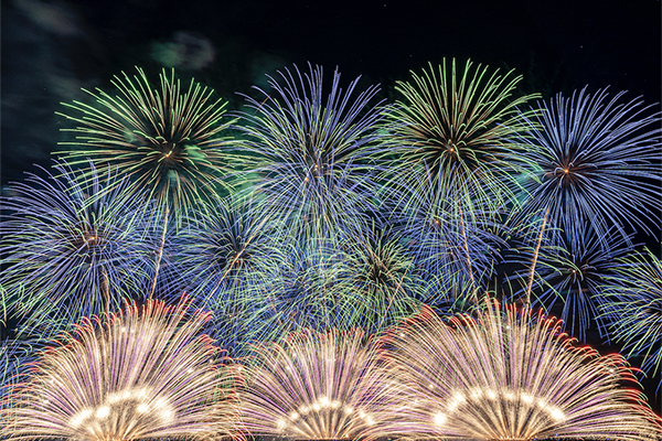 映画音楽・アニメ・J-POP・洋楽・ジャズやクラシックまで、世代を超えて楽しめる名曲の数々に合わせて、花火が完全シンクロ。近年そう珍しくはなくなってきたミュージック花火ですが、拘りの選曲と全国から集めてきた個性豊かな花火玉を、曲の特徴に合わせプログラミングし打ち上げる花火師の技術、「音と光のショー」をご覧いただきます。
