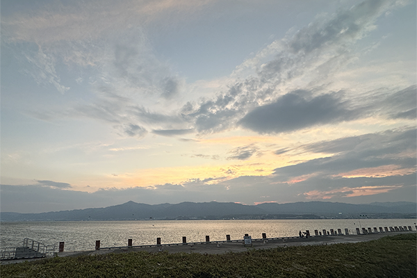 夕方には、比叡山に沈む美しい夕陽をご覧いただけます。